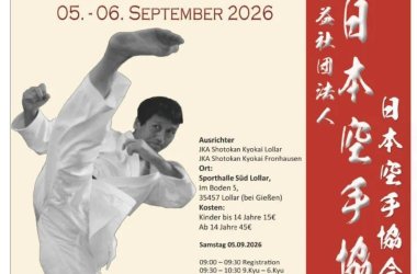 JKA Shokukai Karate Camp mit Kawasoe Sensei in Lollar 2025 Am 6. und 7. September 2025 fand in Lollar ein besonderes Karate-Ereignis statt: Das JKA Camp Kawasoe Masao Sensei in Lollar; Der japanische Meister Kawasoe Sensei leitete einen zweitägigen Lehrgang, der zahlreiche Karateka aus Deutschland anzog. Der Samstag begann mit Kindertraining, gefolgt von intensiven Einheiten für höher graduierte Karateka. Auf dem Programm standen unter anderem Kihon, Krafttraining, Gewichtsverlagerung, Hüftrotation, read more | mehr…